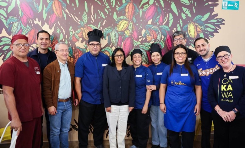 Con la finalidad de fortalecer la economía venezolana y los motores productivos de la nación, la Dra. Delcy Rodríguez, presidenta encargada de la República Bolivariana de Venezuela, en compañía del ministro del Poder Popular de Industrias y Comercio Nacional, Luis Antonio Villegas, y demás autoridades del Gobierno nacional sostuvo un encuentro con emprendedores de una chocolatería para conocer las experiencias y el procesamiento artesanal que se realiza en la Planta.